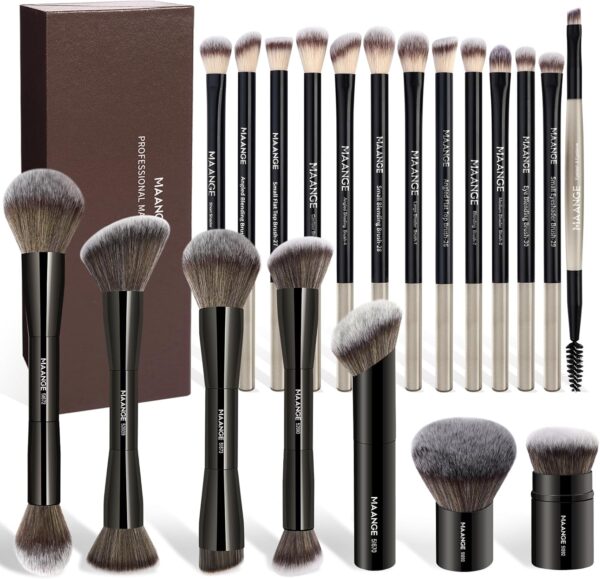 Flash SaleMAANGE 20 Pcs Makeup Brushes with Gift Box, Double-End Multi-functional Makeup Brushes for Blending Liquid Powder Concealer Cream Blush Buffe (Black)